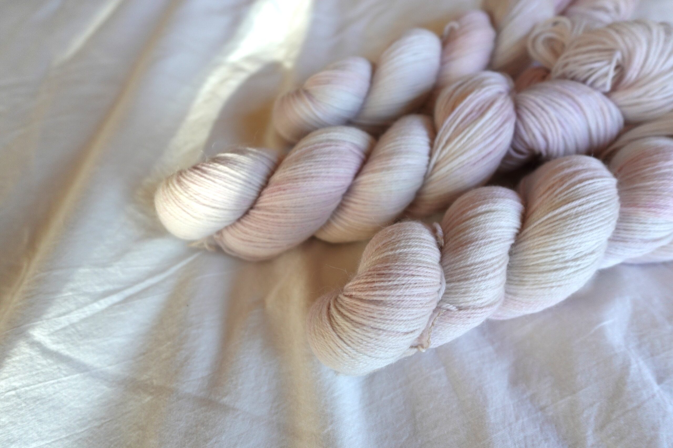 ・全て手作業で染めておりますので、カセごとの色味の違いなどが生じます。