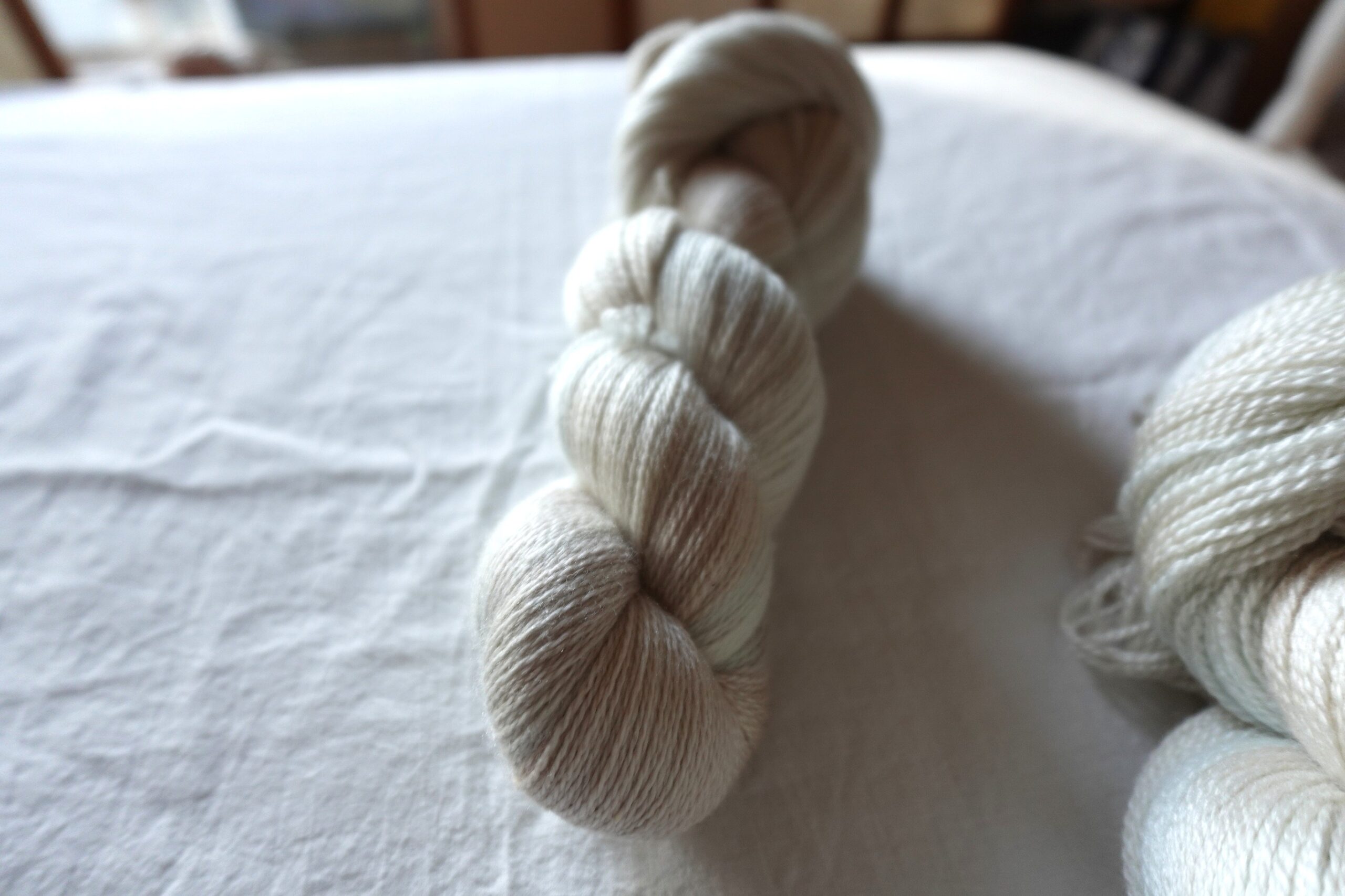 ・全て手作業で染めておりますので、カセごとの色味の違いなどが生じます。